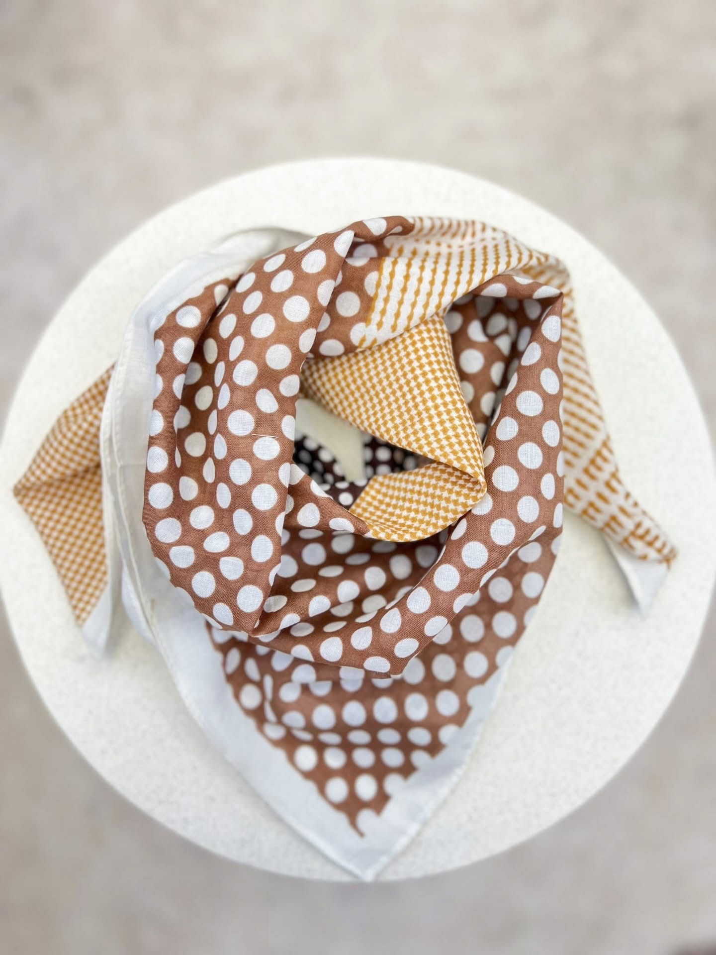 Bawełniana apaszka w groszki i pepitkę – brąz