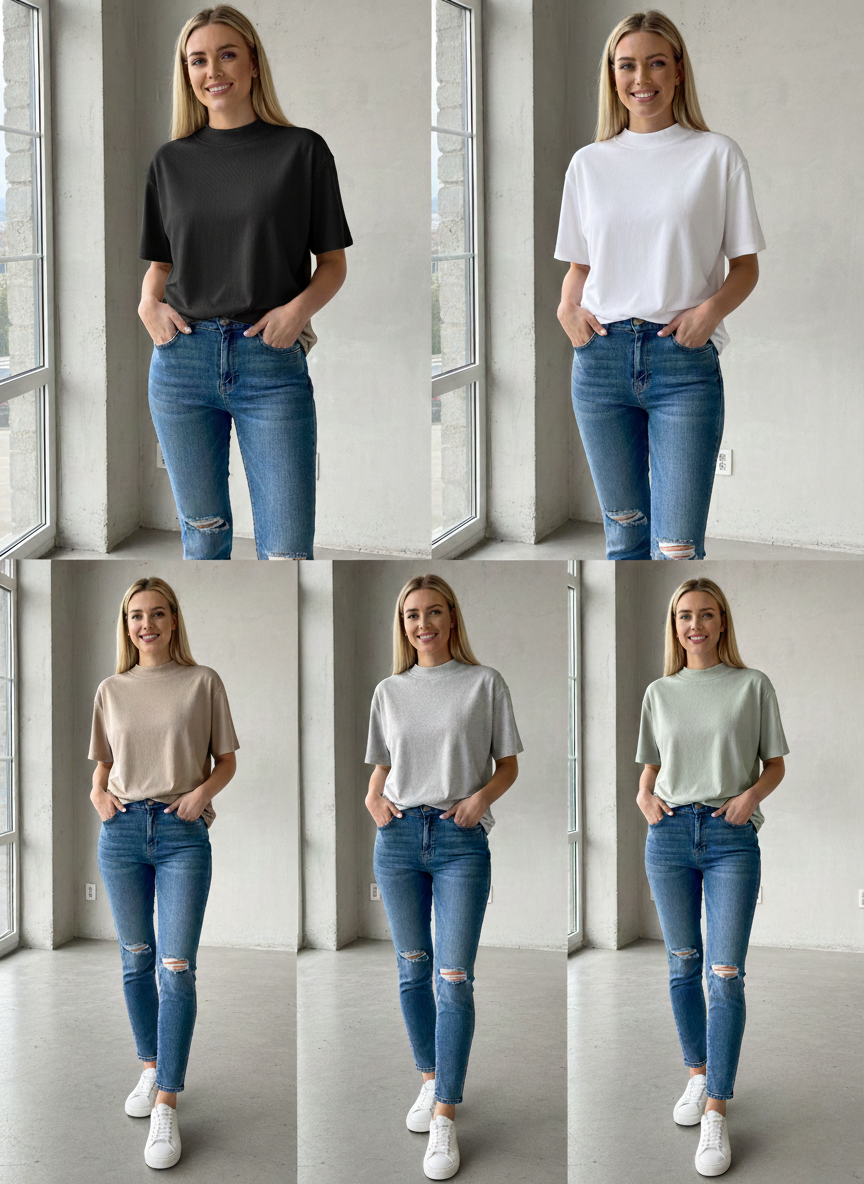 Odkryj definicję idealnego t-shirtu. Nasz klasyczny model to połączenie minimalistycznego designu z bezkompromisową jakością. Wykonany w 100% z mięsistej, oddychającej bawełny, zapewnia komfort, którego nie będziesz chciała zamienić na nic innego.