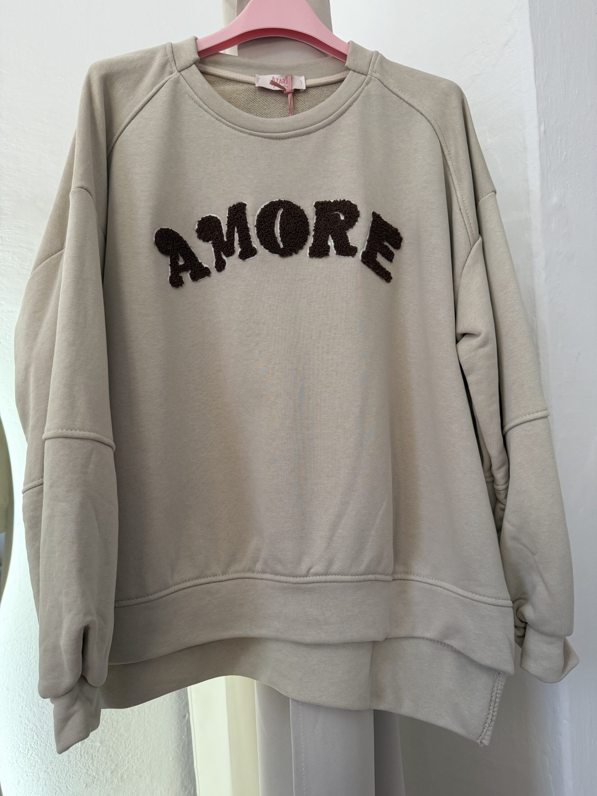 Odkryj idealne połączenie komfortu i najnowszych trendów z naszą najnowszą propozycją od cenionego włoskiego producenta Azara. Bluza o kroju oversize z wymownym napisem „AMORE” to absolutny must-have w szafie każdej kobiety, która ceni sobie swobodę w modnym wydaniu.