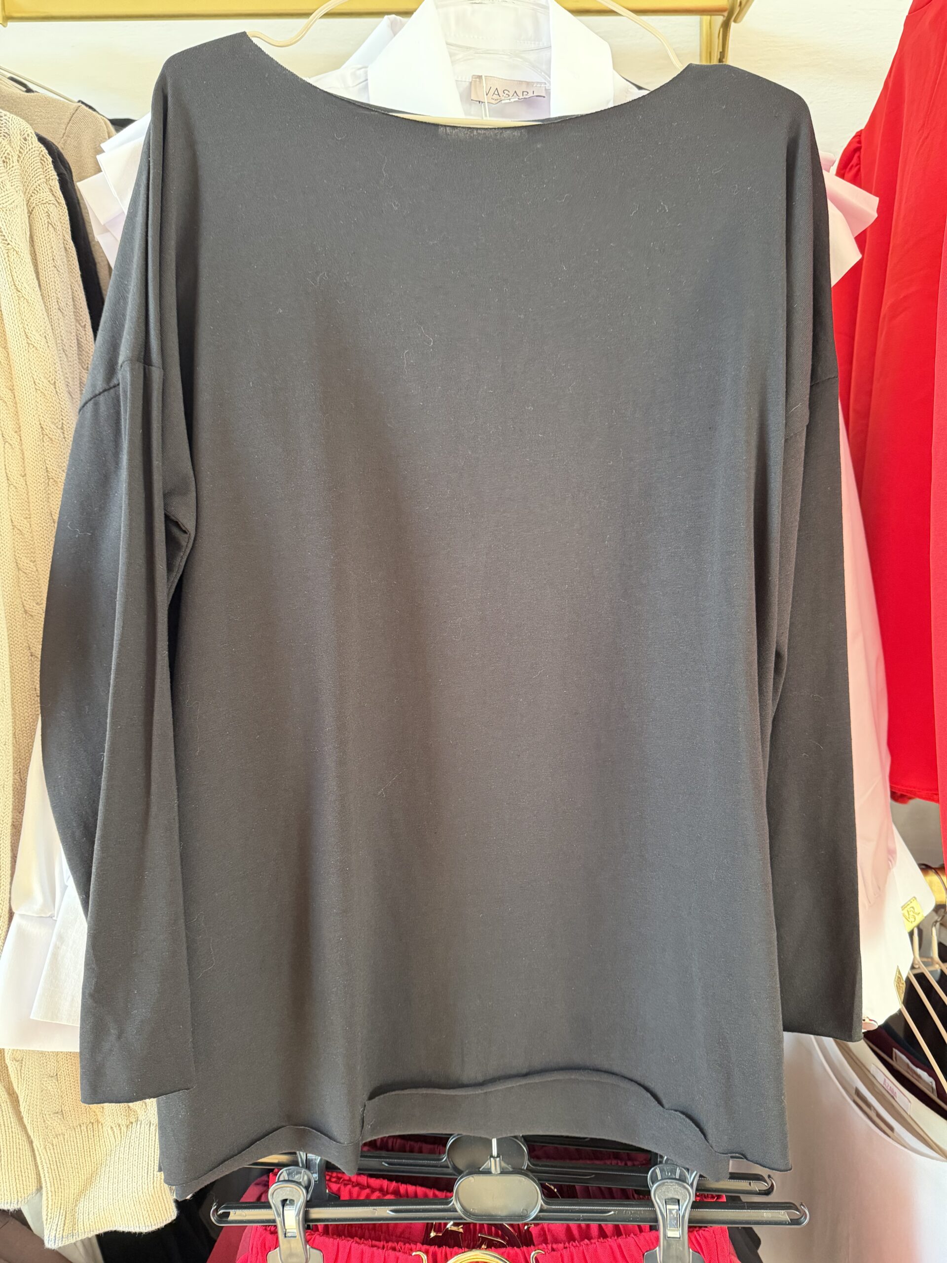 Wykonana z wysokiej jakości materiału, bluzka zaskakuje nowoczesnym wykończeniem: jest cięta laserowo, co nadaje jej oryginalny, surowy brzeg.