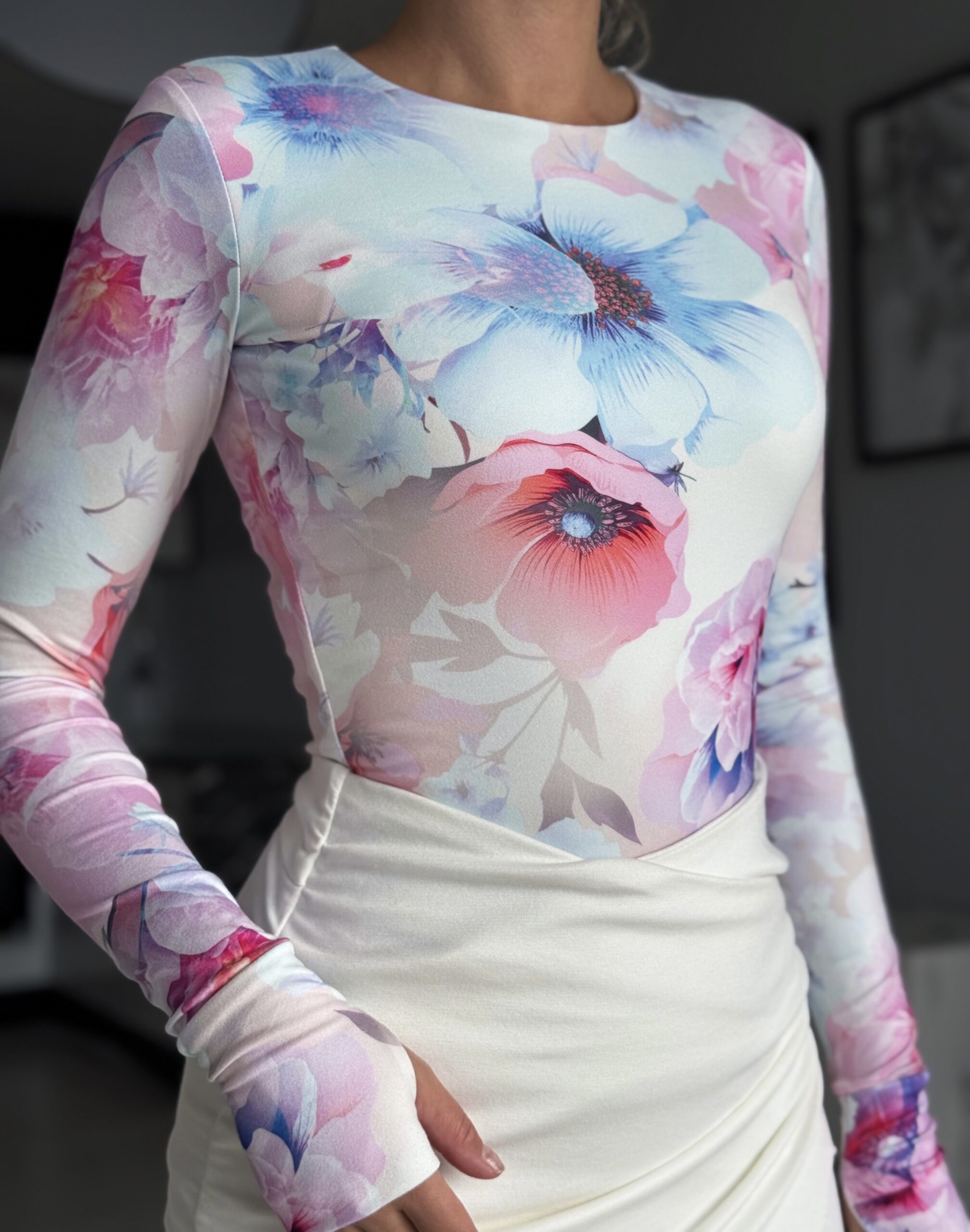 Bluzka MARINA biała w różowo-niebieskie kwiaty