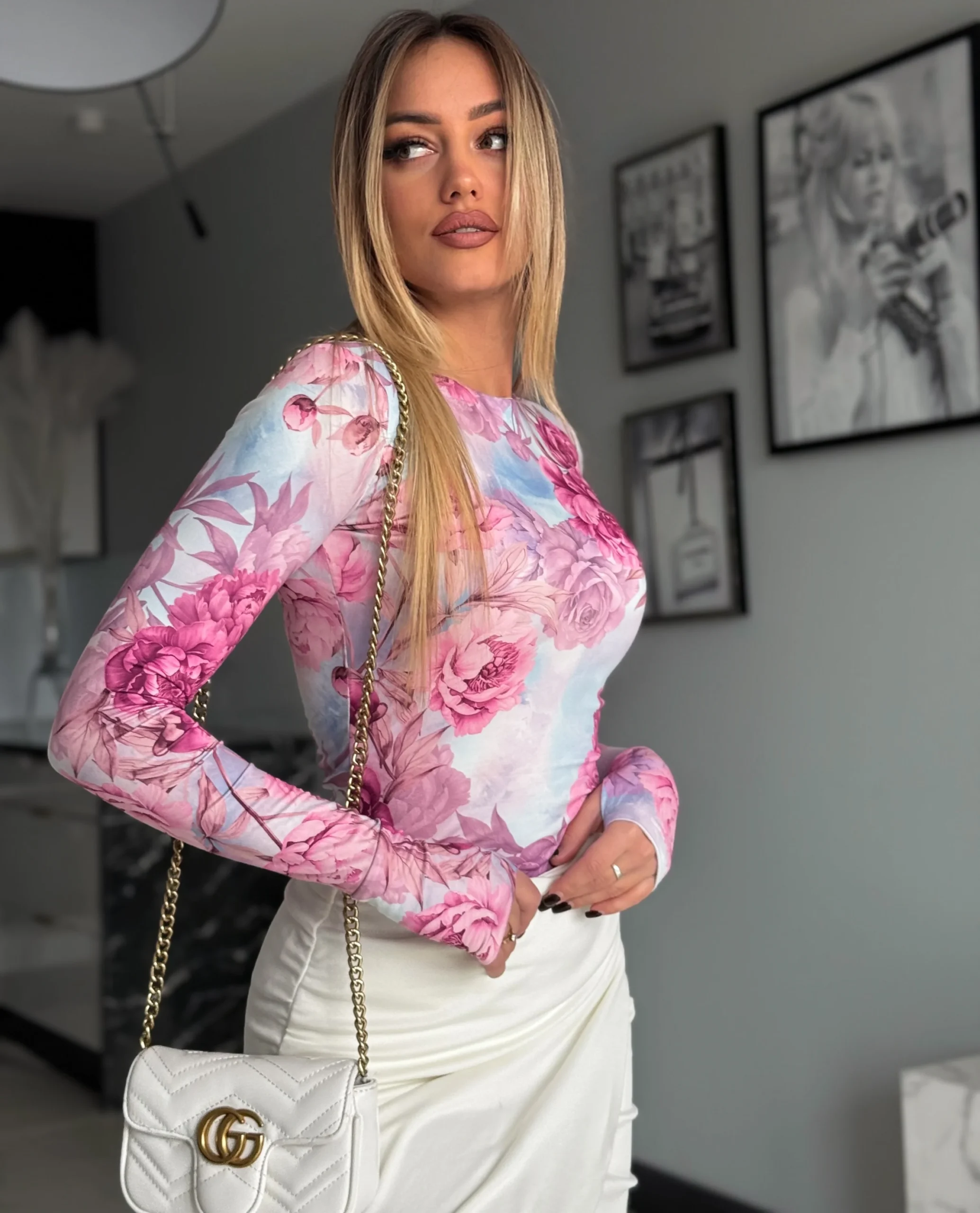 Bluzka MARINA różowe kwiaty