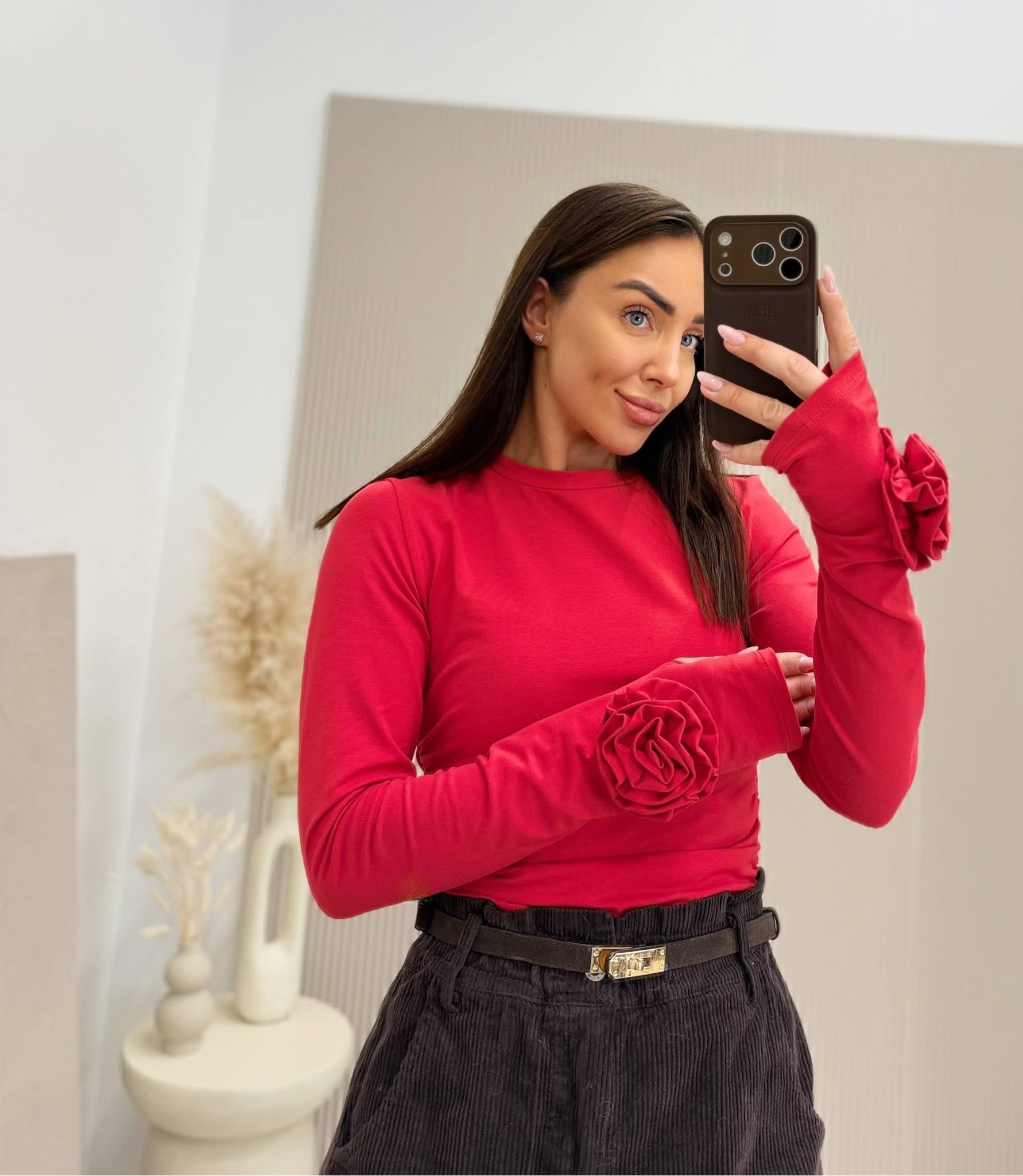 Bluzka z różą czerwona