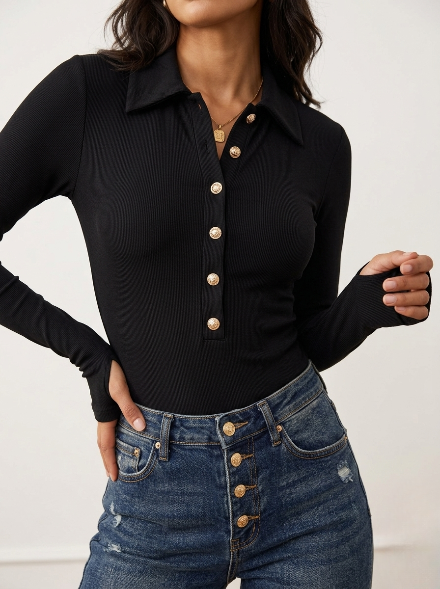Odkryj harmonię wygody i wyrafinowanego stylu. Nasze body koszulowe z długim rękawem to idealny wybór dla kobiet, które cenią sobie klasykę w nowoczesnym wydaniu. Wykonane z miękkiej, elastycznej prążkowanej tkaniny, doskonale dopasowuje się do sylwetki, zapewniając komfort przez cały dzień. Body posiadają otwór na palec.
