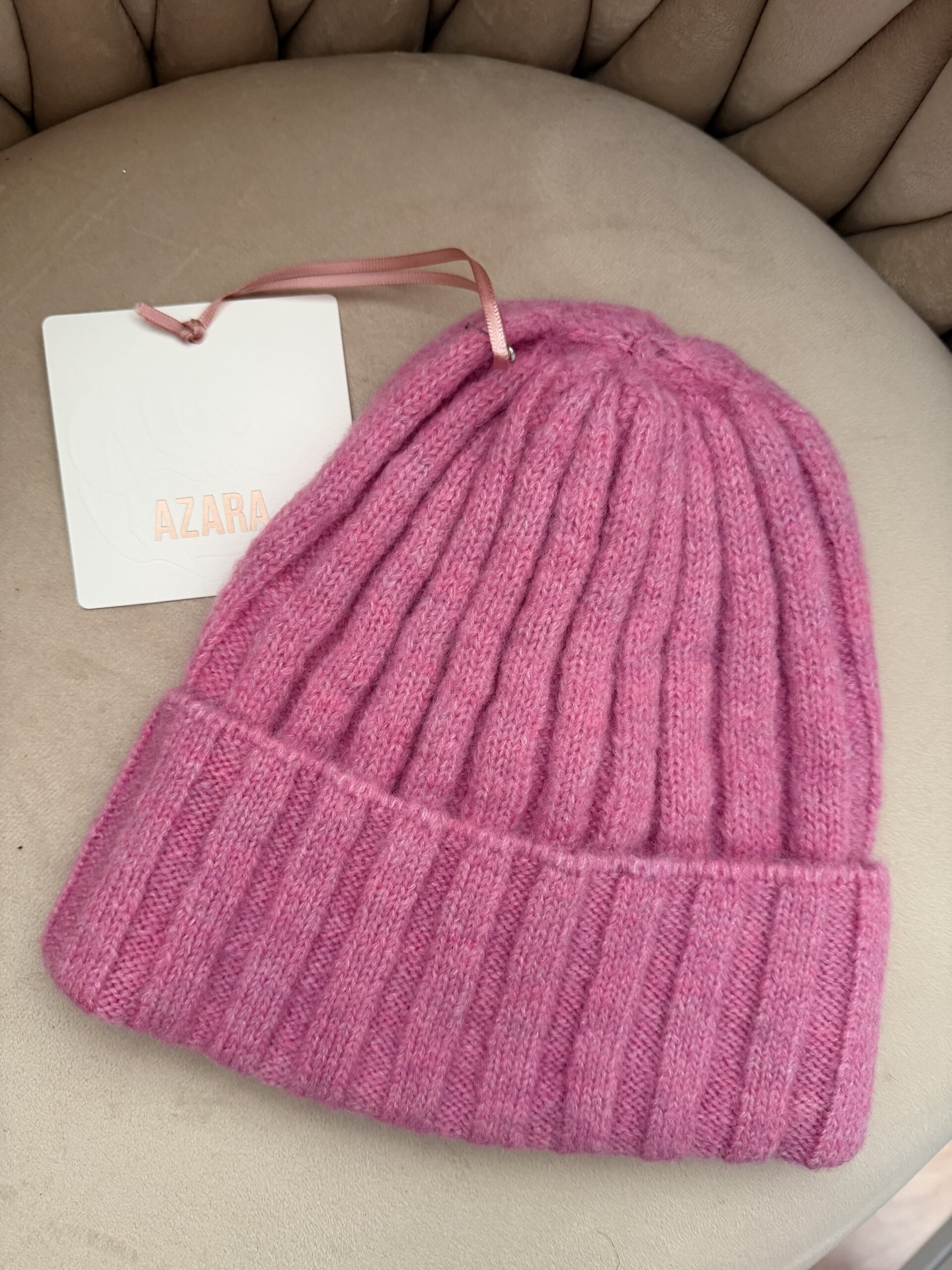 Czapka z wełną AZARA różowa