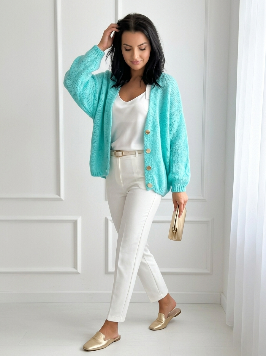 Kardigan Oversize ze Złotymi Guzikami – Synonim Klasy i Komfortu