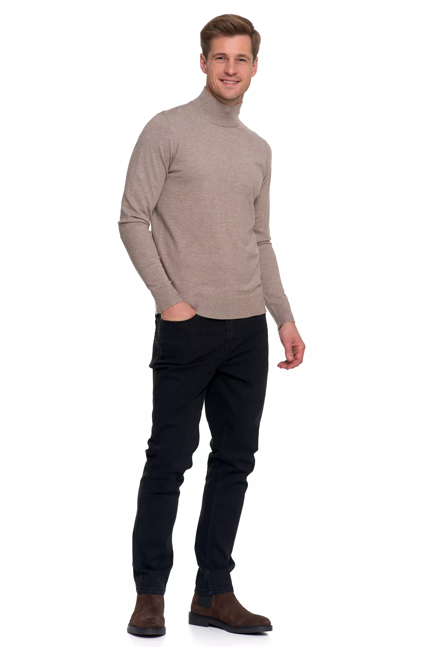 Męski sweter z półgolfem MORAJ beżowy