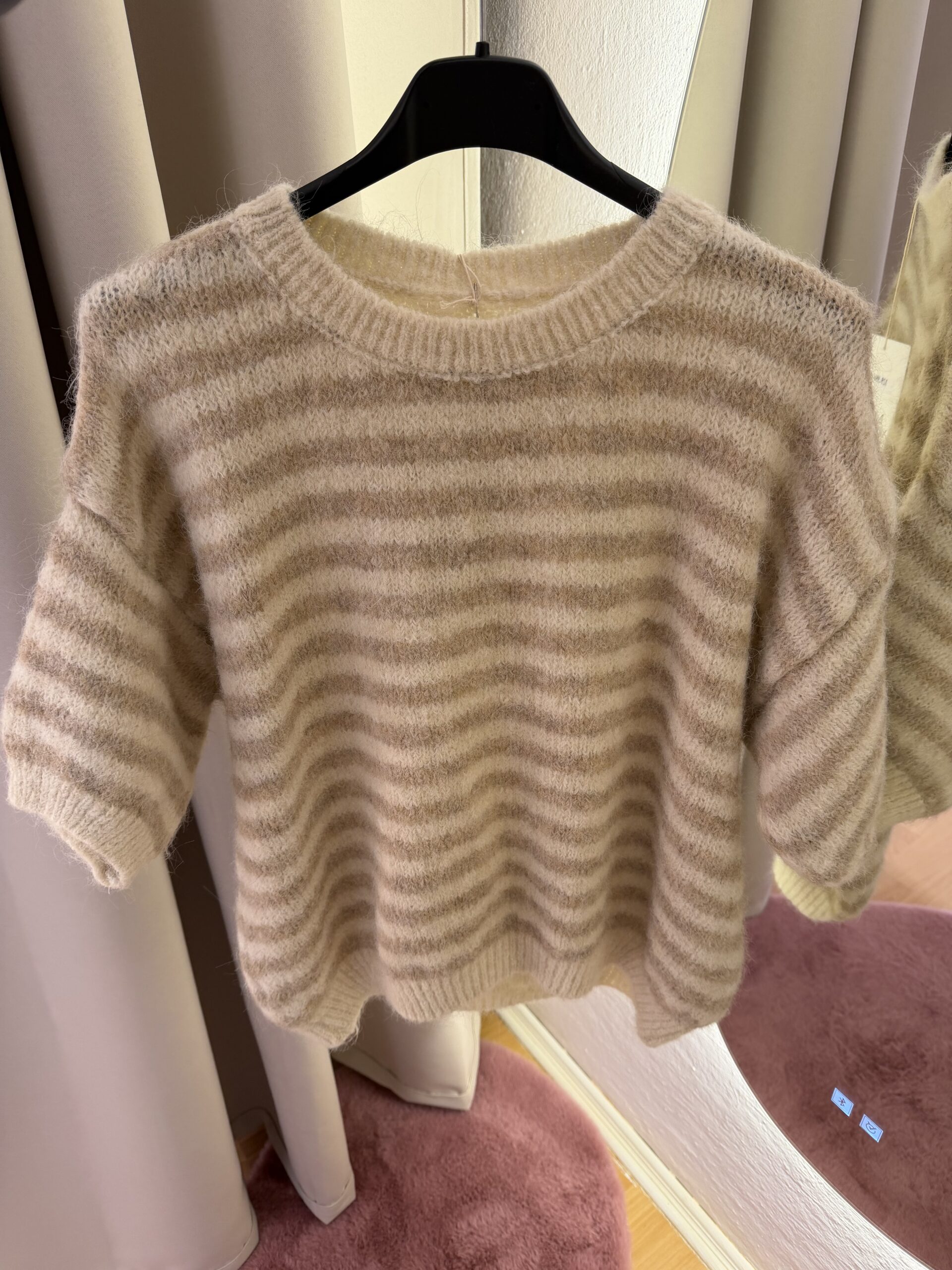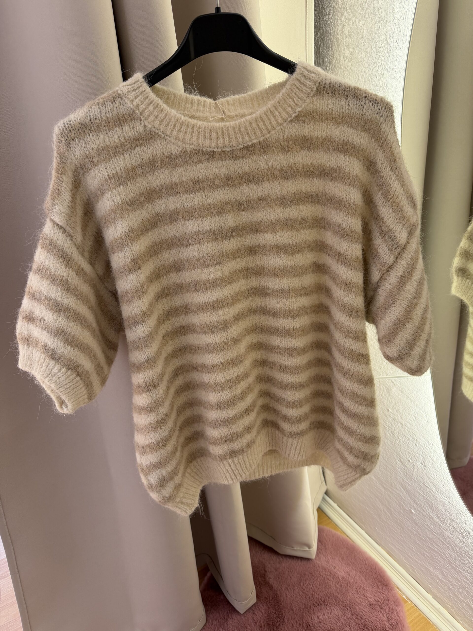 Pasiasty sweter TINA z krótkim rękawem – beżowy