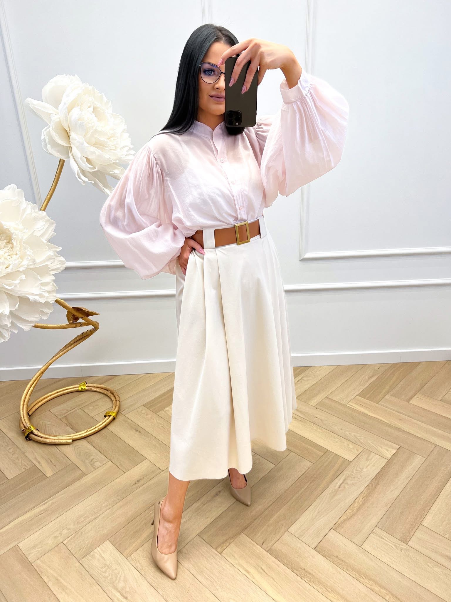 Romantyczna bluzka z bufiastymi rękawami ELLIE – pudrowy róż