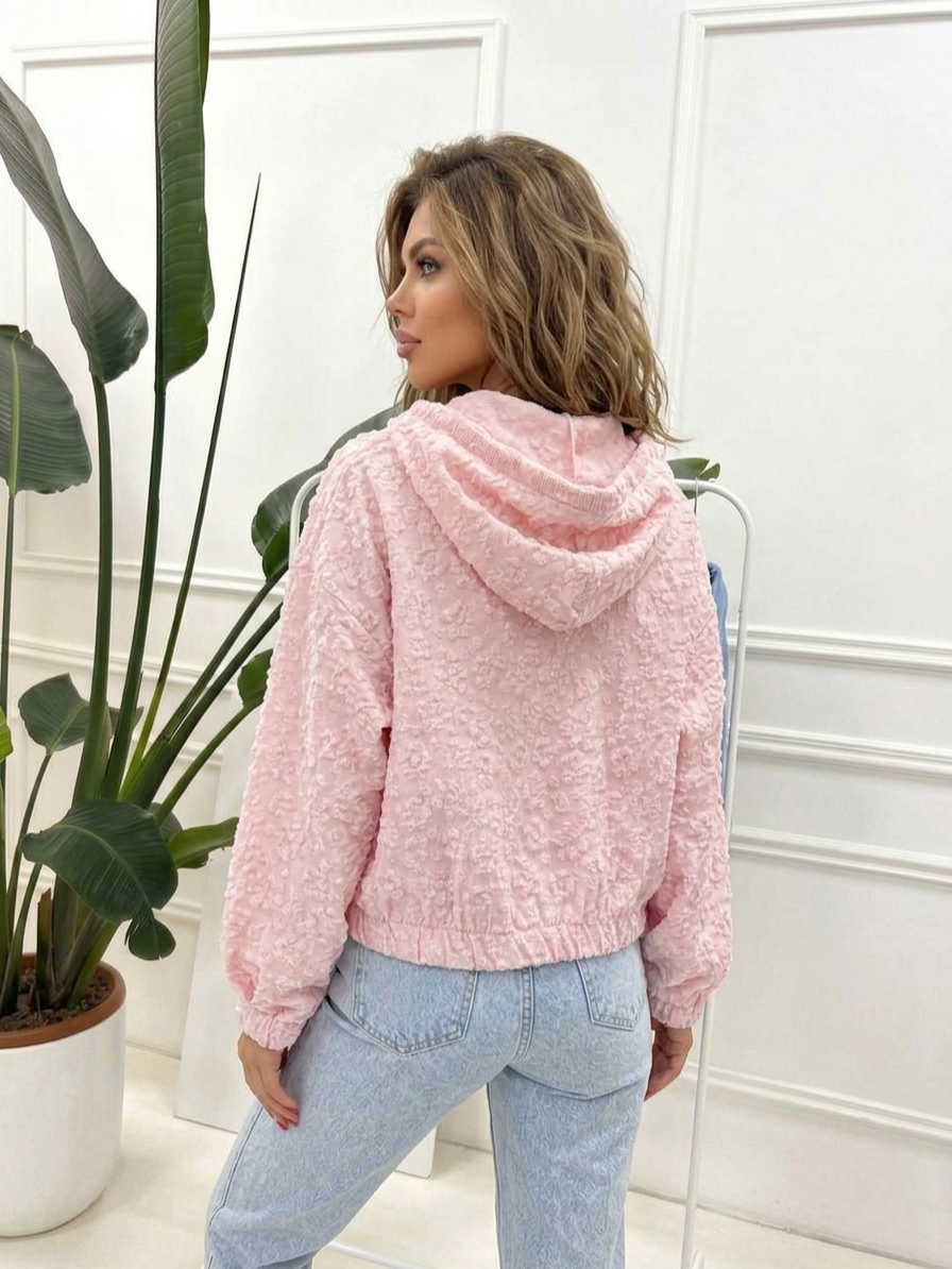 Dodaj odrobinę dziewczęcego uroku do swojej wiosennej garderoby! Ta lekka kurtka damska z kapturem to idealne połączenie wygody i najnowszych trendów. Wykonana z wyjątkowej, tłoczonej tkaniny w kwiatuszki, przyciąga wzrok i nadaje stylizacji trójwymiarowego charakteru.