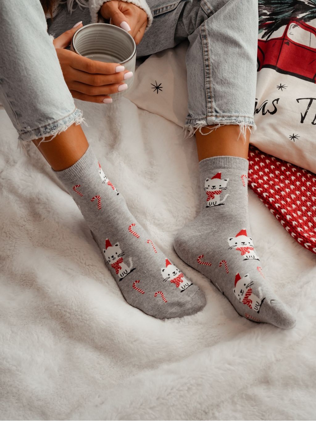 Skarpetki damskie świąteczne Kotek szare