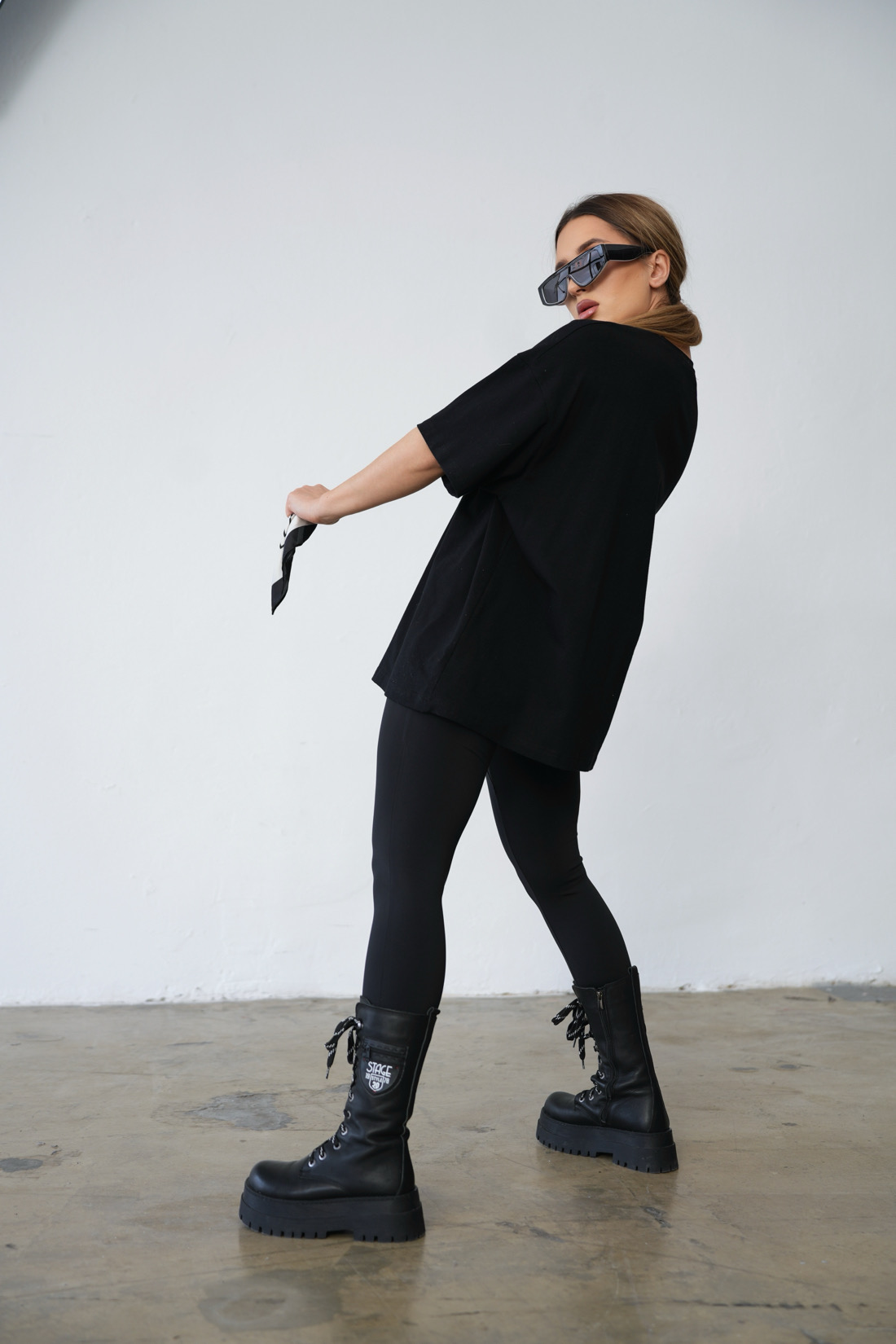 T-shirt BG ONLY z wysokiej jakości bawełny z dodatkiem elastanu dla większego komfortu noszenia. T-shirt posiada naszywka z logo marki. Krój oversize. Model t-shirtu świetnie sprawdzi się w sportowej elegancji. T-shirt nie posiada chusty w zestawie, jest to element ozdobny w stylizacji.